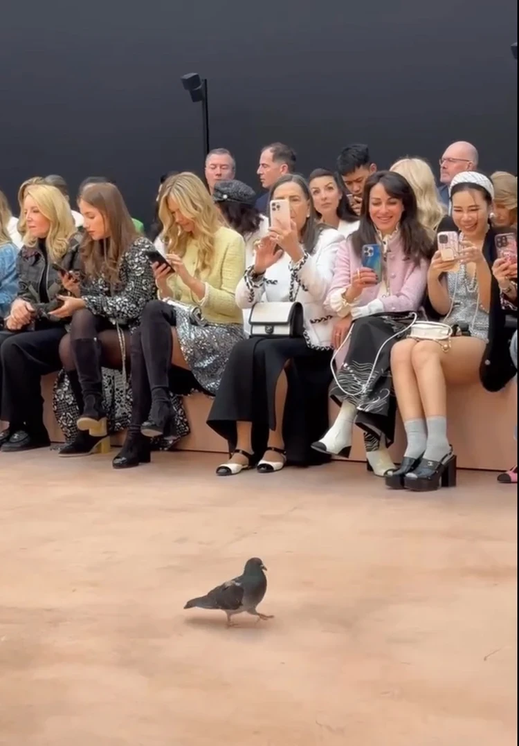 А вот главной приглашенной звездой показа Chanel стал… голубь. Показ птица бегала по ковровой дорожке подиума, гости активно ее снимали.