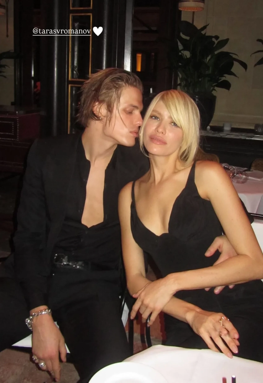 Елена Перминова показала в сторис* новое совместное фото с 29-летним бойфрендом, манекенщиком Тарасом Романовым. В кадре пара сидит за столиком в ресторане, Романов обнимает 38-летнюю модель за талию.