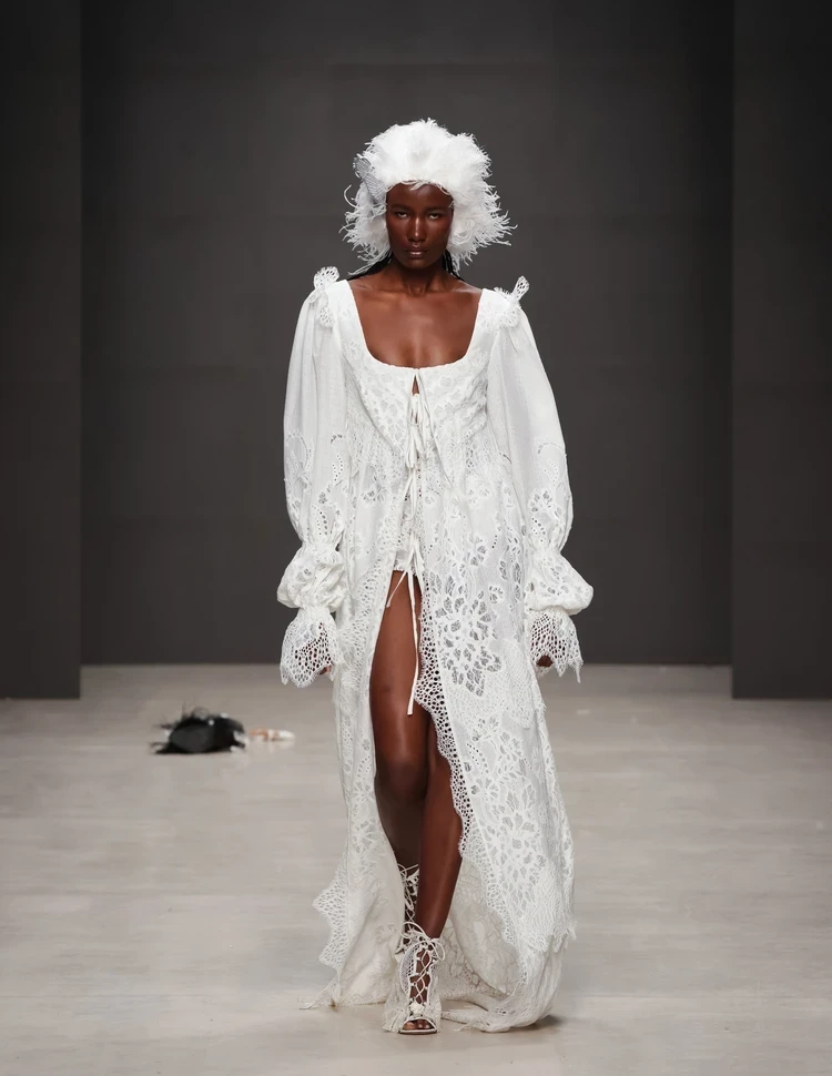 Интересная и воздушная коллекция получилась у основательницы бренда SOL Ольги Селивановой (Москва). Главным материалом Fleur épanouie («Распустившийся цветок») стало кружево, которое украсило платья, юбки и даже обувь. Впрочем, присутствовали образы и с акцентными корсетами, юбками из денима и тренчами из лаковой кожи