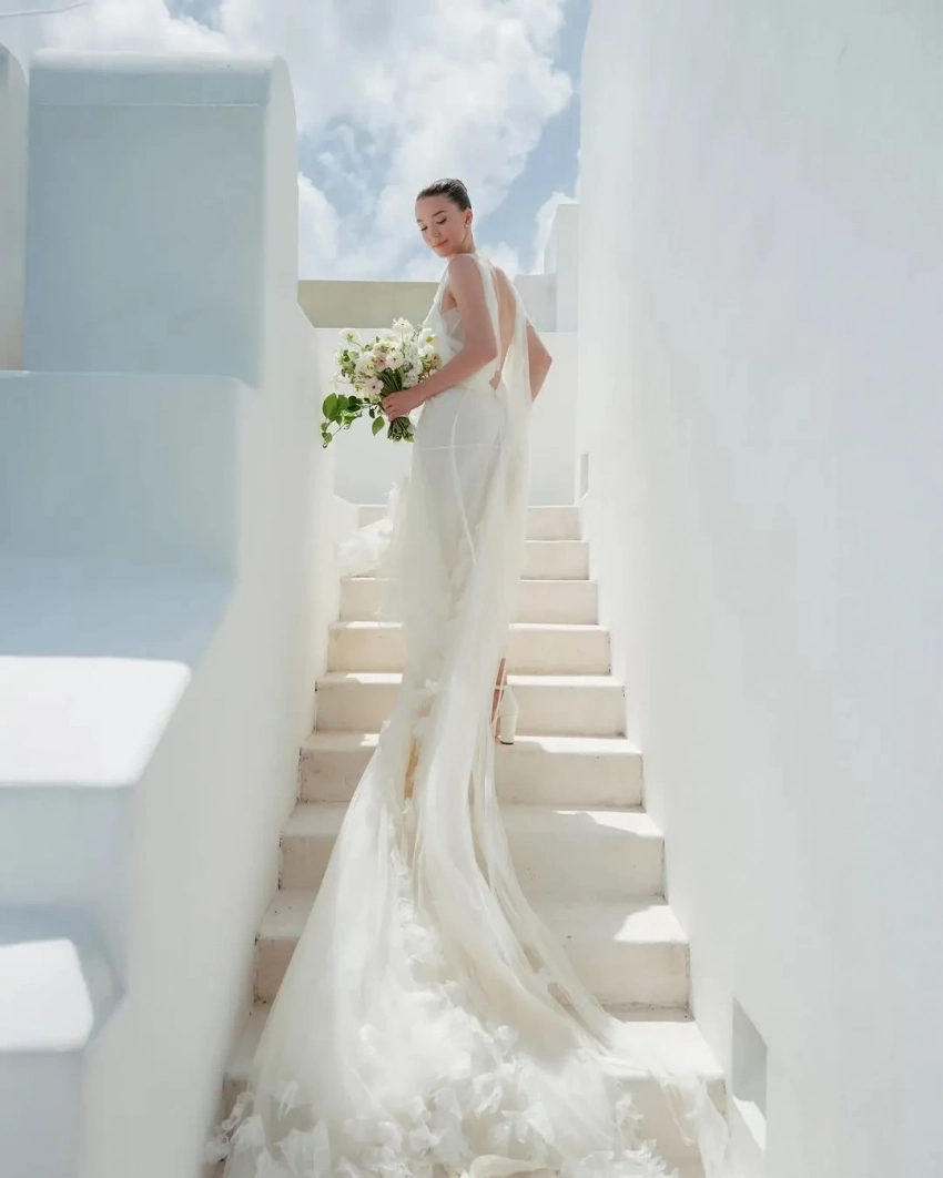 "Я показала Виктории [Бекхэм] несколько своих вариантов, и она внезапно, увлечённо до умопомрачения, начала описывать, каким она представляет себе моё платье — что-то более неземное, струящееся и лёгкое для песка, с тюлем и мягкими цветами — это звучало как мечта", — рассказала Николь, отметив, что Бекхэм сама предложила создать для неё образ.