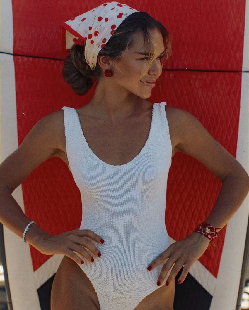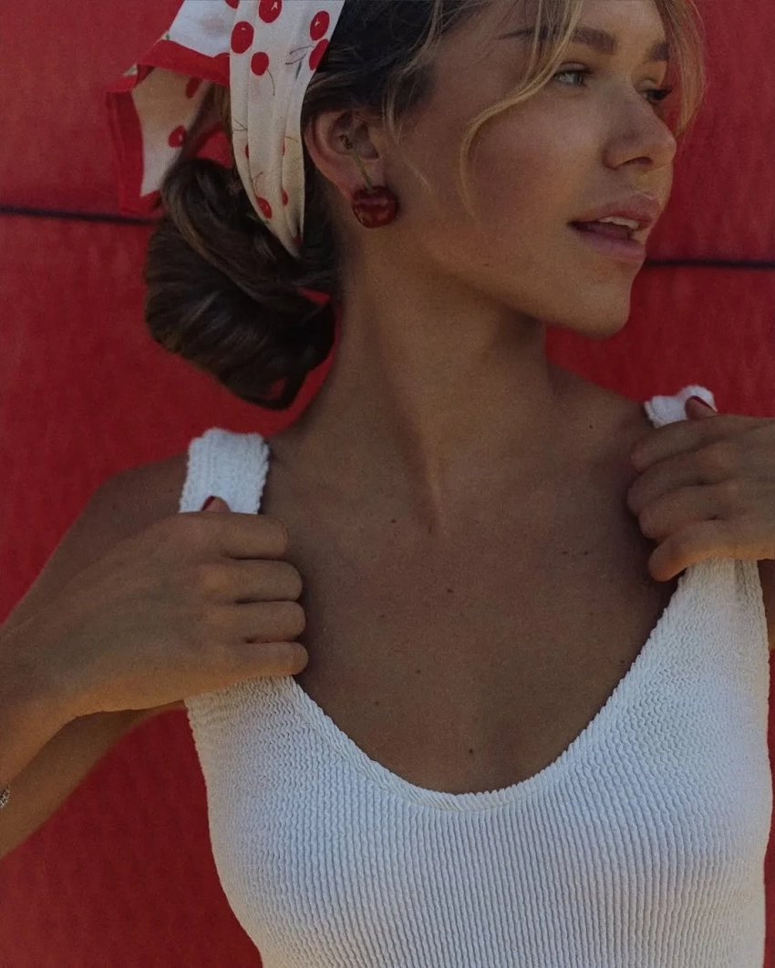Стеша Маликова отдыхает в Дубае. 25-летняя дочь певца Дмитрия Маликова и основательница бренда одежды Dress by Stesha снялась в пляжной фотосессии и опубликовала снимки в соцсетях. На кадрах Маликова позирует в белом слитном купальнике и в косынке с вишнями. Образ дополнили серьги в форме вишен и красный маникюр.