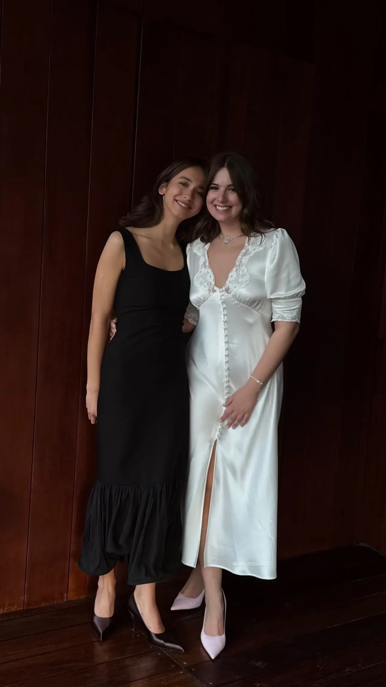 Галина Хаимова, Анка Ахалая и Александра МаниовичАлександра родилась в семье владелицы модных бутиков и светской дамы Светланы Захаровой и бизнесмена Михаила Маниовича. После окончания школы она уехала во Францию, где поступила в престижную школу Parsons, где изучала дизайн и искусство. В 2013 году Маниович дебютировала на балу дебютанток Tatler, а в 2019-м запустила собственный бренд аксессуаров Maniovich AM. Сейчас девушка является частой гостьей светских мероприятий. Помимо нынешнего замужества, о личной жизни Александры известно немного: в прошлом ходили слухи о её романе с актёром Никитой Ефремовым, однако пара не делала официальных заявлений.