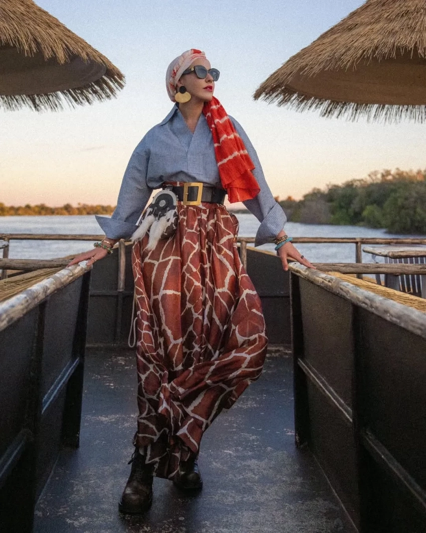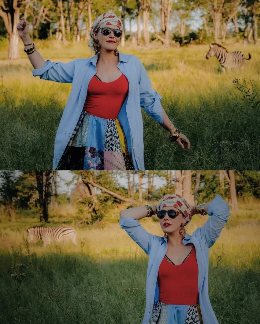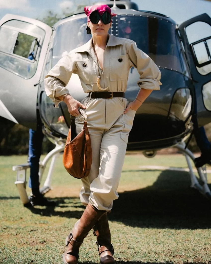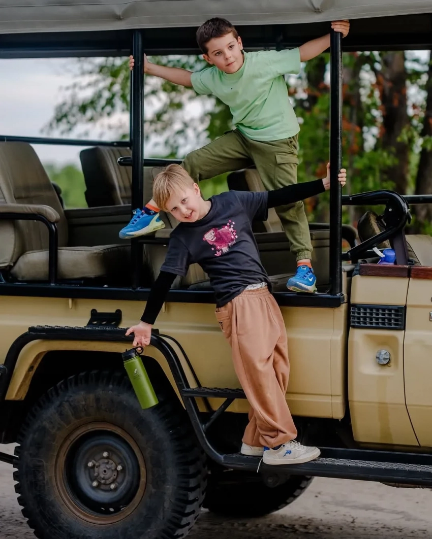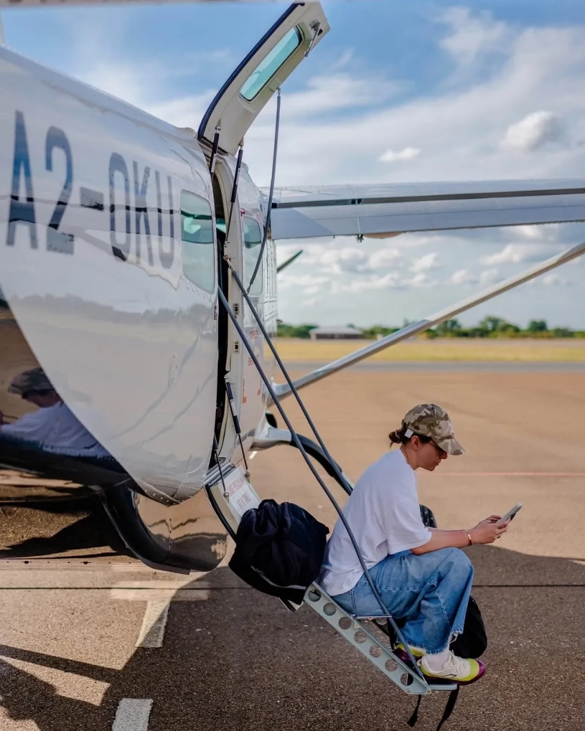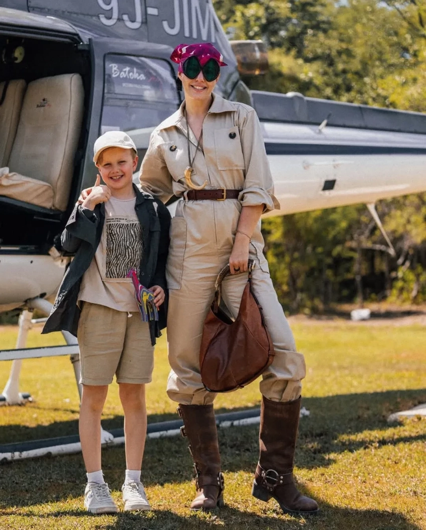 43-летняя журналистка с сыном от экс-супруга Максима Виторгана снова посетили сафари, позировали на фоне самолёта и местной природы, а Ксения нашла повод в поездке выгулять модные образы.
