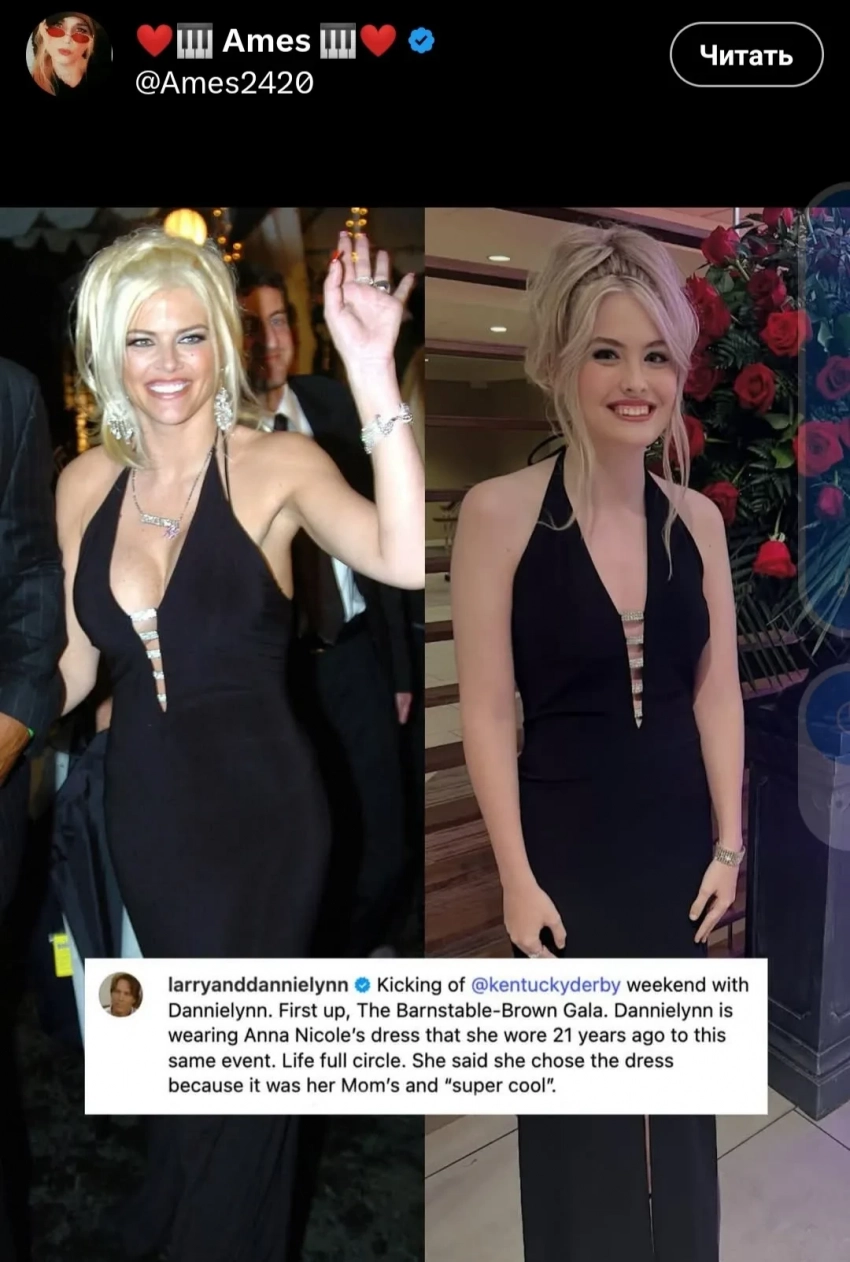 Анна Николь СмитСтоит отметить, что скачки Kentucky Derby имеет особое значение для Ларри и Дэннилин, поскольку Анна Николь впервые встретилась с будущим отцом ее дочери на гала-вечере Barnstable Brown в 2003 году. Напомним, что знаменитая модель Playboy умерла в возрасте 39 лет в 2007 году, оставив все состояние дочери.