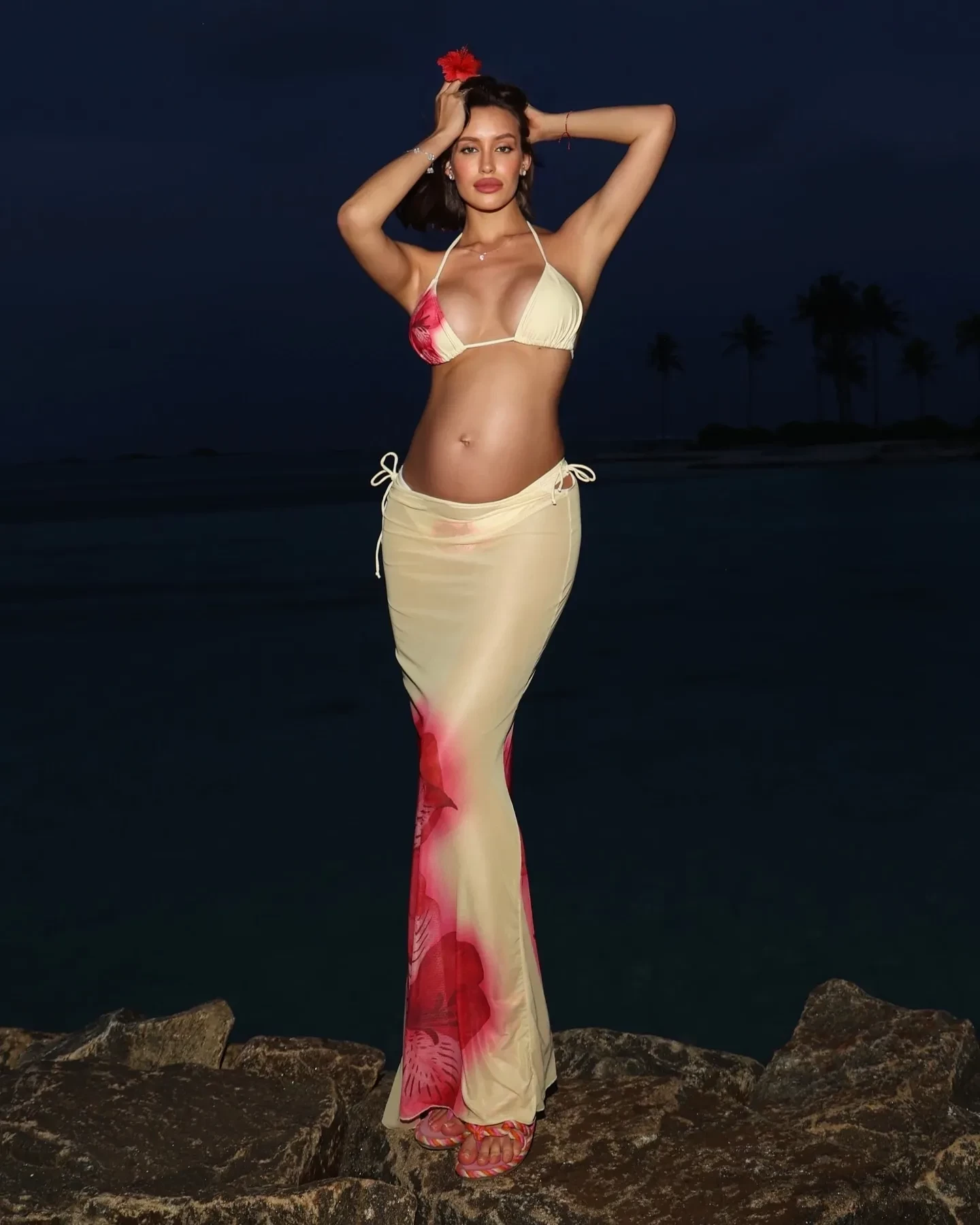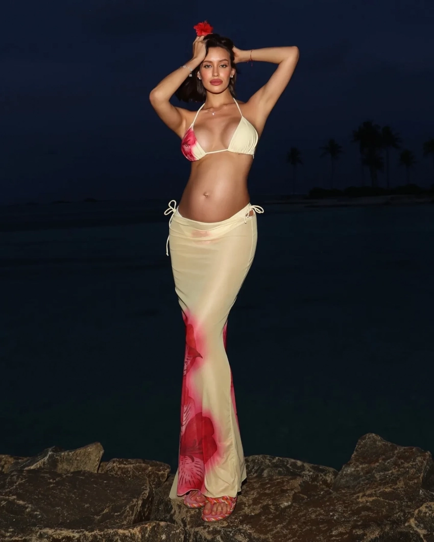 Возлюбленная Тимати, 31-летняя Валентина Иванова, которая ждёт от него ребёнка, продолжает делиться в соцсетях фото и видео со своей изменившейся фигурой. Она опубликовала в инстаграме* кадры с отдыха на Мальдивах, где вновь продемонстрировала свой округлившийся живот.