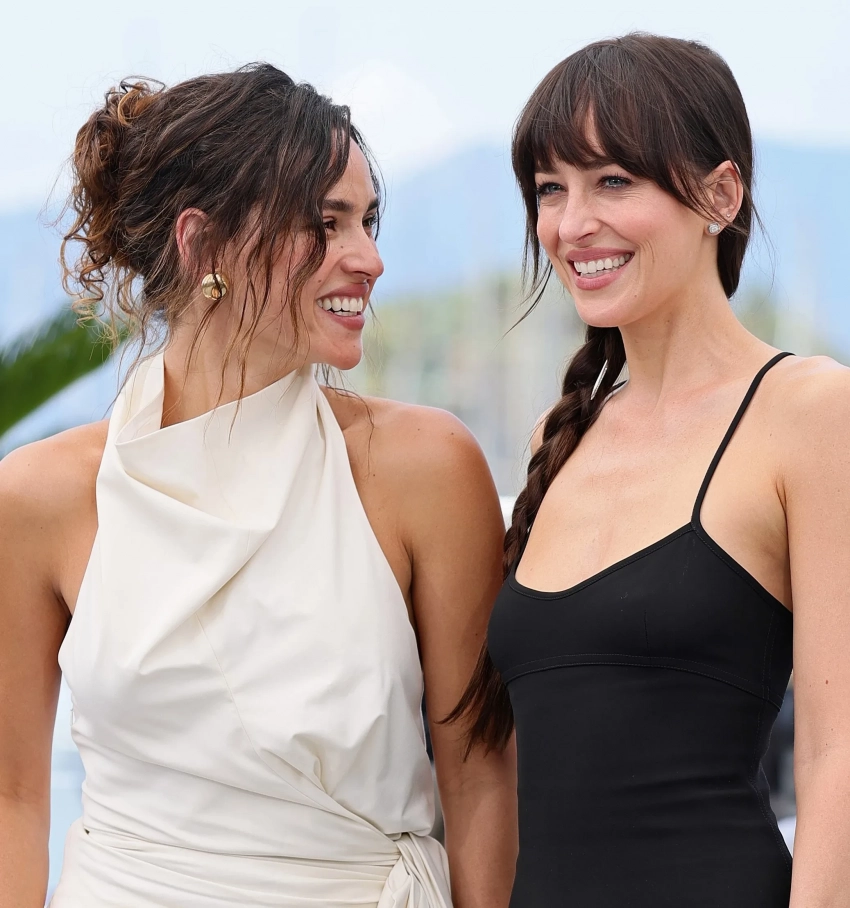 Дакота Джонсон посетила фотоколл своего нового фильма "Все её бывшие" на 78-м Каннском кинофестивале. 35-летняя актриса позировала фотографам в компании коллеги и новой девушки Джейсона Момоа, 32-летней Адриа Архоны, которая тоже сыграла в картине одну из главных ролей.