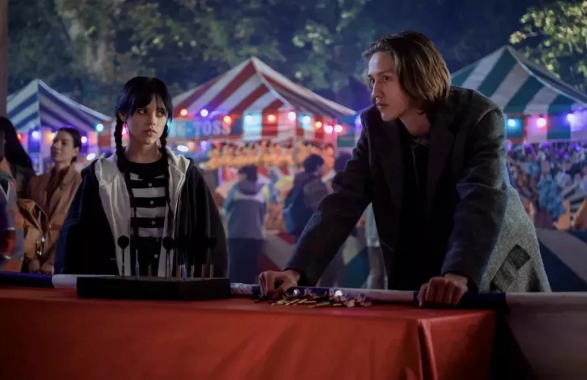 Дженна Ортега и Перси Хайнс Уайт в сериале "Уэнсдэй"Дженна Ортега и Перси Хайнс Уайт