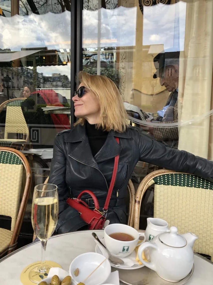 "Я всегда хочу в Париж. Долгие прогулки по набережным, сhausson aux pommes (булочка с яблоком) из кафе Carette — по форме вобла-воблой, а на вкус лучше не бывает, ледяное шампанское, зеленые стулья Люксембургского сада и, конечно, любимый рядом. В общем, romantique в идеальном о нем представлении", — подписала 51-летняя актриса фотографии, на которых позирует на летней веранде любимого кафе и на местной улочке. Она также добавила снимок с мужем и теми самыми булочками.