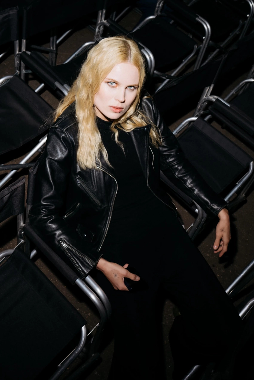 26-летняя Алеся Кафельникова приехала на презентацию сразу после мюзикла "Вальс-бостон" и рассказала в соцсетях, что переодеваться ей пришлось прямо в машине. Модель позировала в кожаном платье и обуви на высоких каблуках.