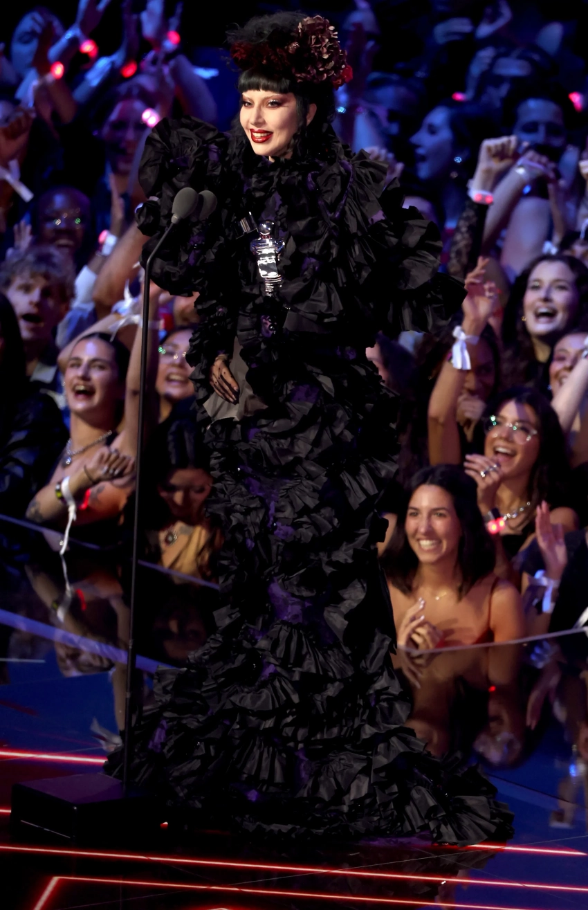 Мэрайя Кэри и Ариана ГрандэПэрис и Ники ХилтонПэрис и Ники Хилтон Ариана Гранде Ариана ГрандеРики МартинЛенни КравицЛенни КравицСабрина КарпентерСабрина КарпентерЗвездой вечера стала 39-летняя многократная обладательница премии MTV VMA Леди Гага, на счету которой в этом году 12 номинаций. Она стала "Артистом года", а также победила в номинациях "Лучшая художественная постановка", "Лучшая режиссура" и "Лучшая совместная работа" за дуэт с Бруно Марсом Die With a Smile. На сцену Гага вышла в платье Marc Jacobs.
