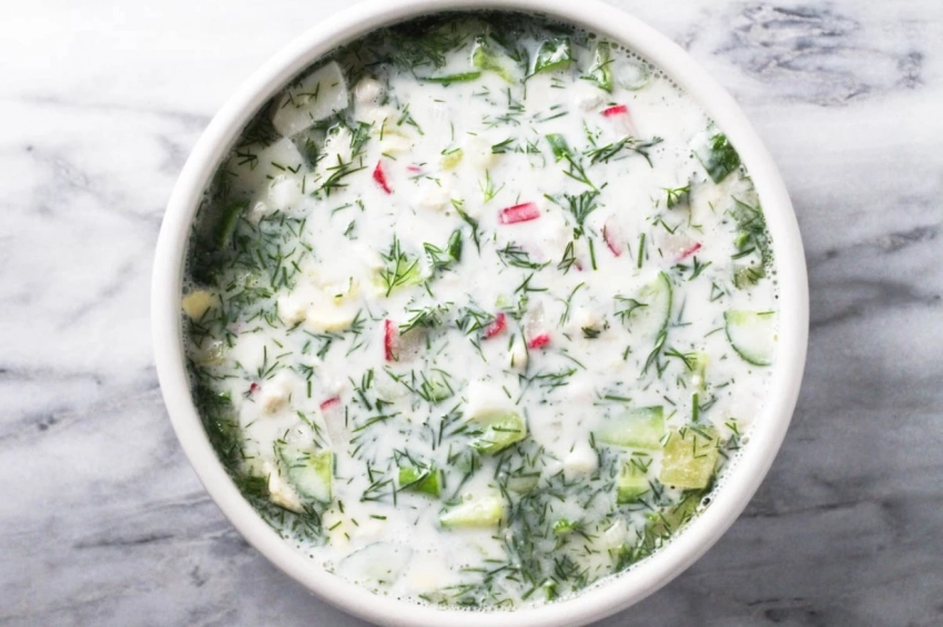 Окрошка на кефире с минералкой — классика, которая не стареет. Она не только освежает, но и действительно насыщает.